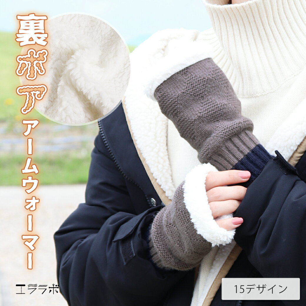 アームウォーマー ボア 裏ボア 指穴 ニット 防寒 保温 あったか 冬用 柄 柄物 ボーダー 縄柄 ケーブル 手袋 小物 アームカバー スキー スノボ 冬 暖かい プレゼント フリーサイズ FREE おしゃれ かわいい *2-1t *y3-3t