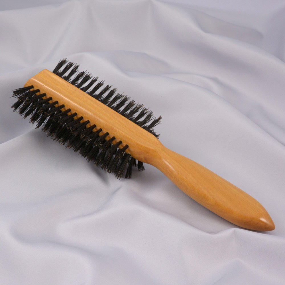 最高級の純粋な天然毛を豊富に使ったこちらのヘアブラシは、ブリッスルの天然油分が適度に髪と地肌を刺激し、清潔で艶のある髪のコンディションを保ちます。