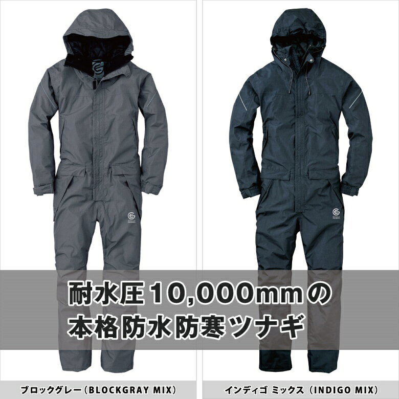 【商品名】 防水防寒ツナギ 【ブランド】 GRACE ENGINEER'S (グレイスエンジニアーズ) 【品番】 GE-207 【商品説明】 表生地に耐水圧10,000mmの防水加工を施し、縫い目の裏側にシーリング加工を施した防水仕様の防寒つなぎ。