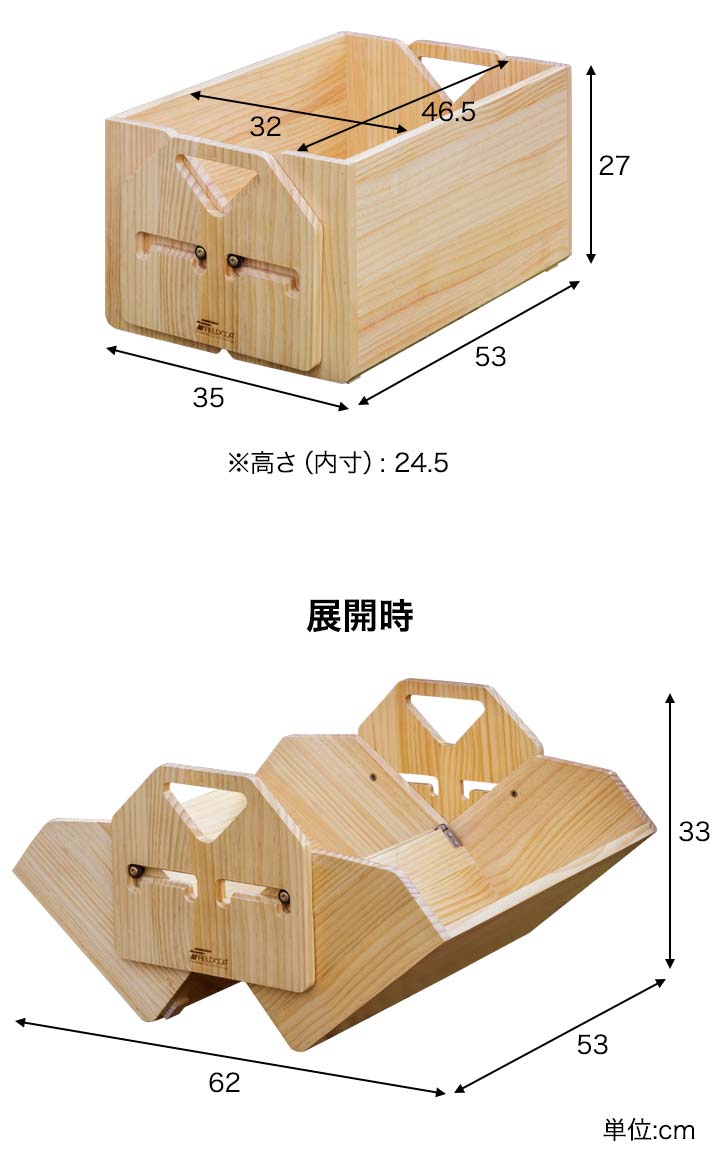 [こんな商品をお探しの方に] コンテナボックス 蓋付き 屋外 大型 収納ボックス コンテナ ボックスコンテナ 箱 木箱 天然木 ウッドボックス CONTAINER BOX フタ付き ふた付き 大容量 衣類収納 ケース 工具入れ 工具箱 ツールボックス 小物入れ 収納家具 整理整頓 カラーボックス ストッカー 屋外ストッカー ワイドストッカー タンク カーゴ トランクカーゴ ガレージボックス ワイドボックス カートランク カー用品 車載ボックス ベランダ収納 ガレージ収納 インテリア収納 シェルフ ラック ファニチャー 頑丈収納ボックス 屋外収納ボックス アウトドア アウトドア用品 キャンプ キャンプ用品 キャンプ道具 Fieldoor フィールドア おしゃれ かんたん 初心者 ビギナー 道具 アウトドアグッズ フィールドギア アクセサリー レジャー 山 海 ビーチ 公園 フェス 屋外イベント バーベキュー BBQ 運動会 クラブ活動 部活動 お花見 キャンピング グランピング テント設営 ツールボックス ケース ハードケース 小物収納 テント小物収納 収納家具 ストッカー 焚火ツール クックウェア テーブルウェア 食器 アクセサリー ギアコンテナ フィールドボックス 道具箱 工具箱 用具入れ 工具入れ 道具入れ ナチュラル 無印 おしゃれ 頑丈 丈夫 タフ シンプル アメリカン インダストリアル 男前 ガーデニング チェア 車載 倉庫 キャンプ アウトドア おすすめ 口コミ diy商品詳細(木製コンテナボックス) ブランド: フィールドア(FIELDOOR) サイズ: 外寸 : (約)幅35cm×奥行53cm×高さ27cm 内寸 : (約)幅32cm×奥行46.5cm×高さ24.5cm 展開時 : (約)幅62cm×奥行53cm×高さ33cm 容量: (約)36L 材質: パイン材 重量: (約)5kg 特記事項: ※本商品は、素材の特性上、ムラや小さな傷が入っている可能性がございます。