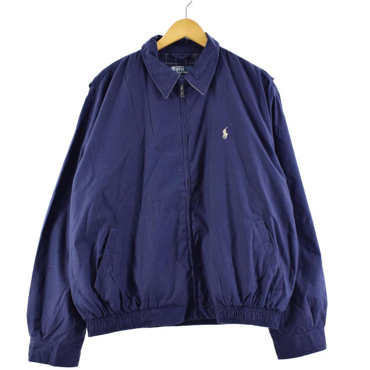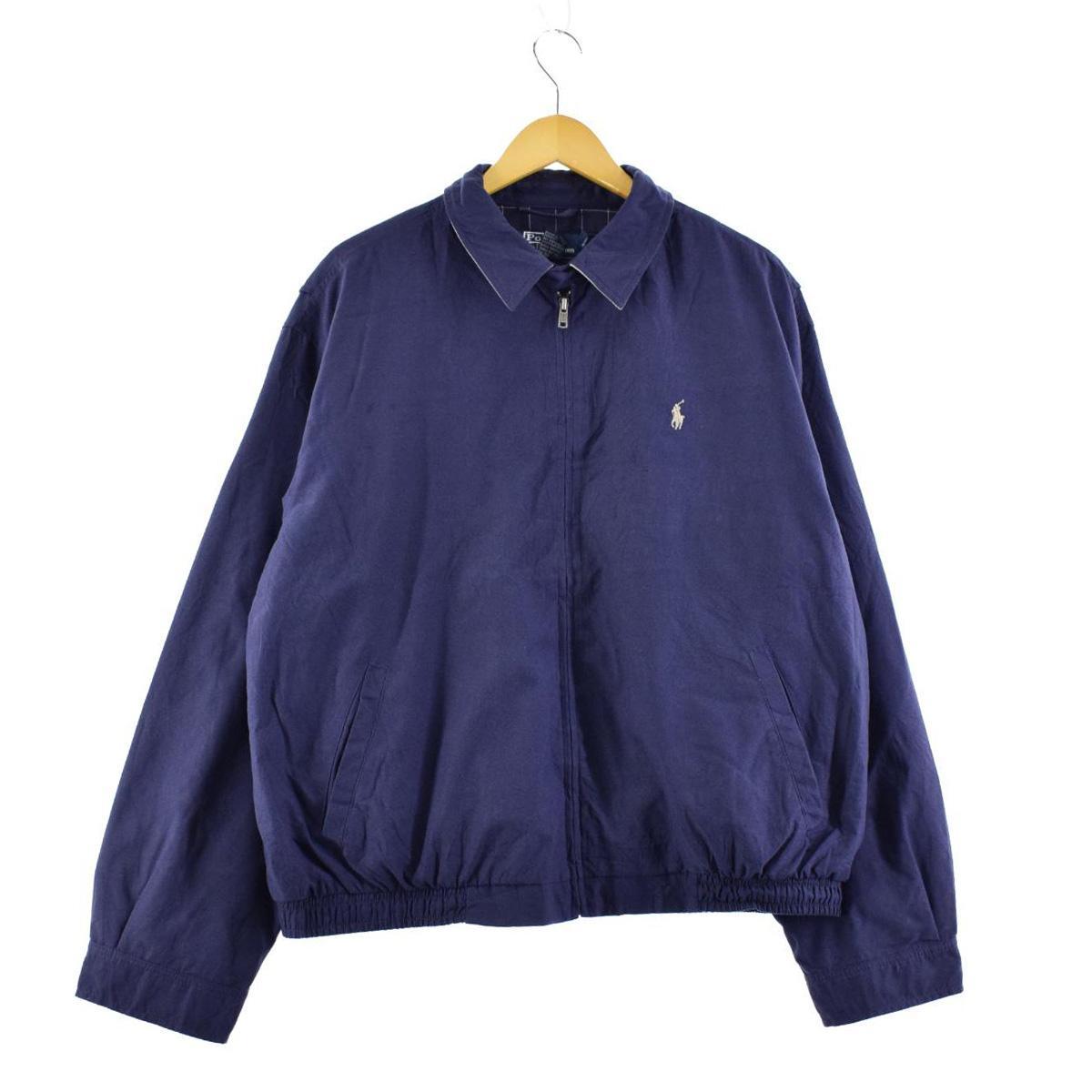 大きいサイズ XXL トリプルポニー 刺繍 ■ POLO ポロ ラルフローレン フルジップ コットン スイングトップ ジャケット ( メンズ 男性 ) 紺| 中古 RALPH LAUREN ラルフ アウター ネイビー ブルゾン ジップジャケット コットンジャケット ビッグシルエット オーバーサイズ